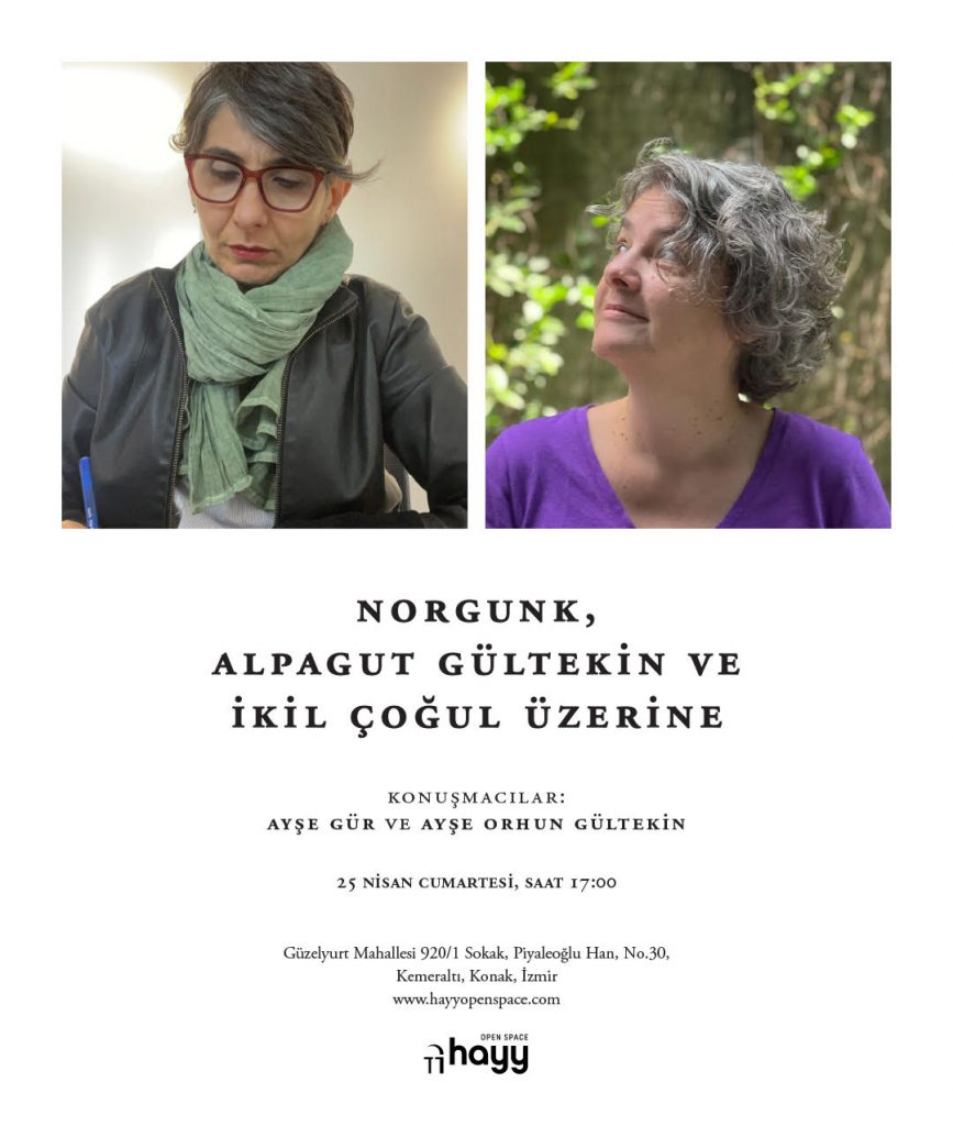 Hayy Açık Alan’da Büyük Çayır Sergileri kapsamında birlikte bir sergi kurgularken kaybettiğimiz sevgili Alpagut Gültekin’in anısına, Türkiye’de sanat yayıncılığı alanında önemli katkıları ile bir ekol yaratan Norgunk ile kıymetli Sarkis’in bir aradalığında, Bülent Erkmen’in tasarladığı görsel kimliği ile İkil ve Çoğul sergisine dair konuşma Cumartesi 17.00’de Hayy Açık Alan’da olacak.